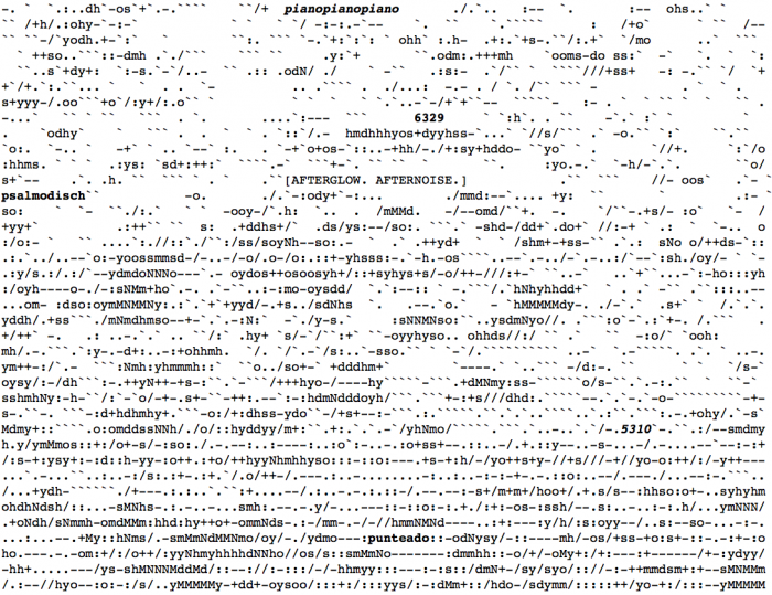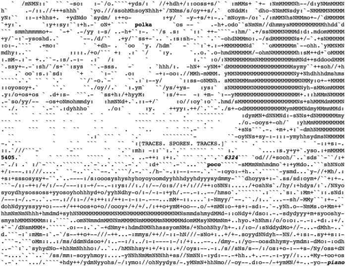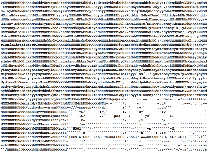 - computerstem leest de symbolen (monotoon, in een bepaald tempo); niet-verstaanbare tekst, ritmisch.