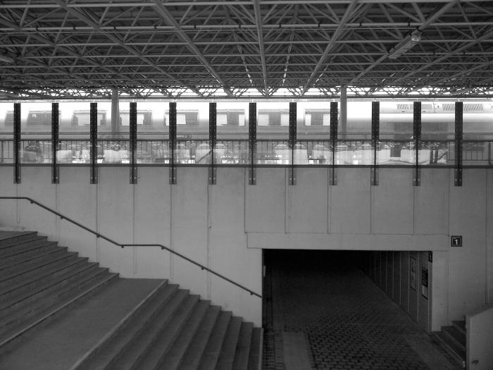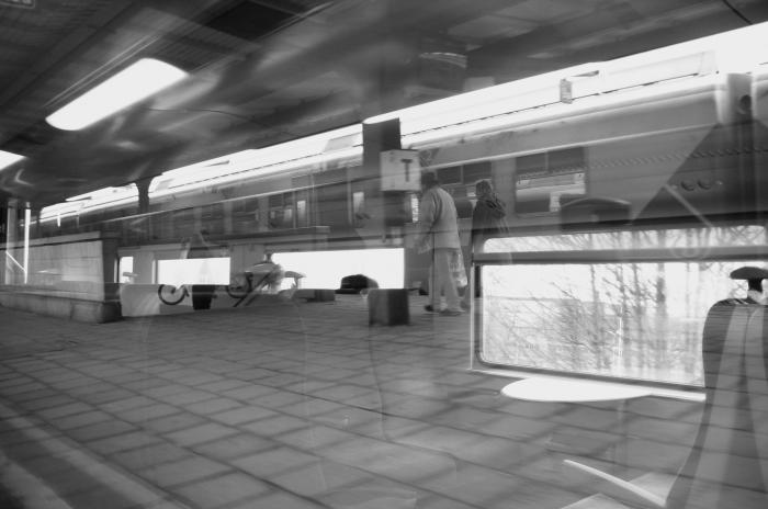 Reizigers komen en gaan, stappen in- en uit. Je reist verder. Woorden zweven rond in hoofden en gedachten, maar klinken niet. Je denkt heel even aan voorbije treinreizen, waar intermenselijke communicatie meer aanwezig leek te zijn. Korte (vaak louter informatieve) uitwisselingen tussen controleur en reiziger, of praatjes met medereizigers of verbale uitingen (meestal naar jezelf gericht) van boosheid als gevolg van stilstand of - al dan niet bepaalde - vertragingen: redundante recollecties die opdagen uit je aleatorische geheugen en die je vlucht nogmaals onderbreken. Je kijkt rond.
